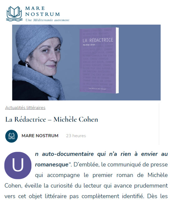 En mêlant réflexions, anecdotes et cheminement individuel dans et vers l’écriture avec ses souvenirs intimes ou ses expériences de lectrice, Michèle Cohen nous livre un auto-documentaire romanesque abouti et pleinement réussi.