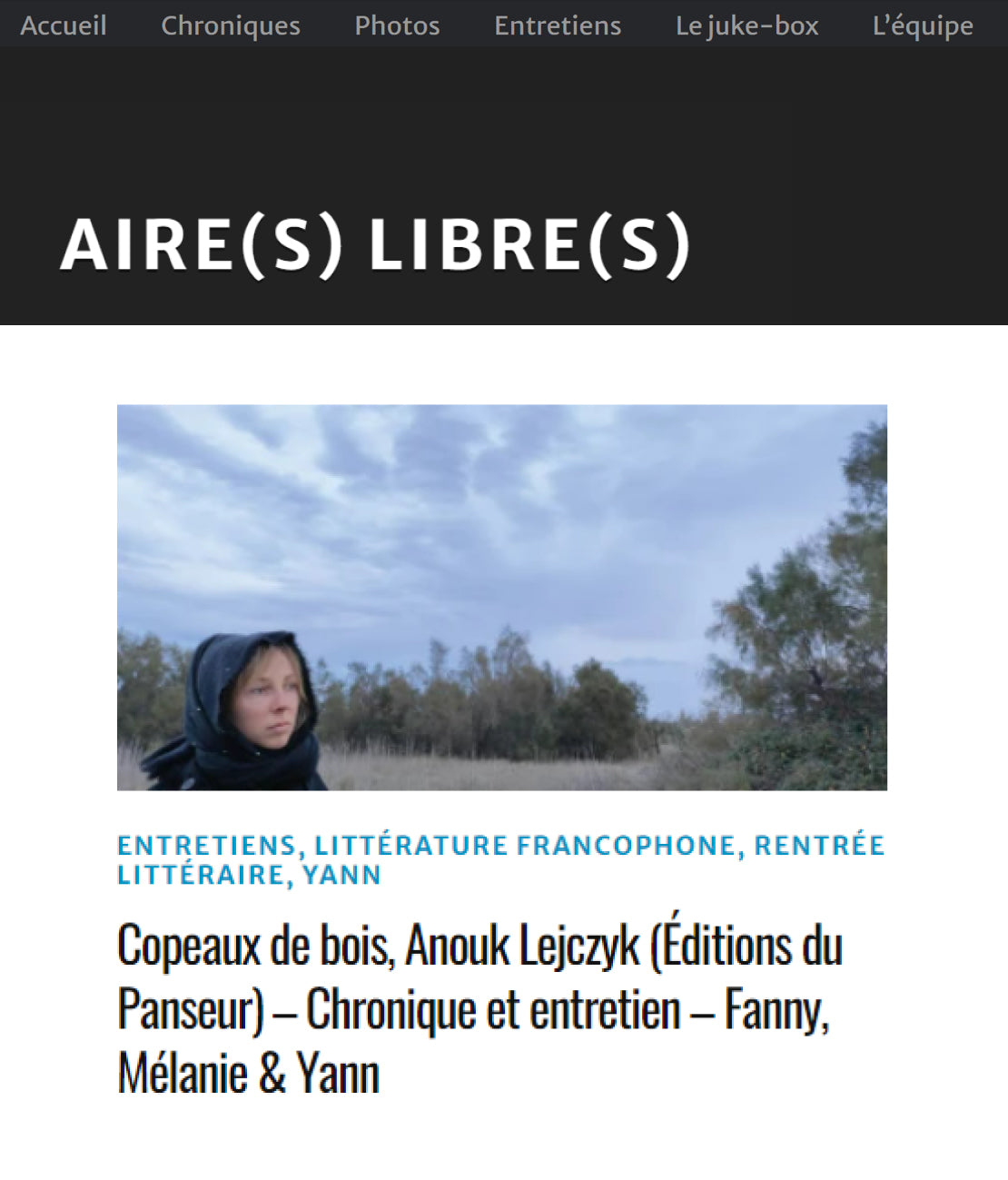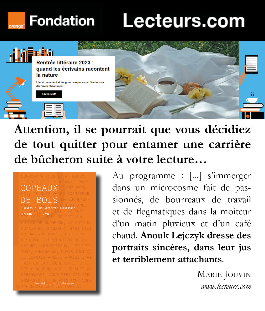 « Véritable pas de côté de cette rentrée littéraire. Récit libre, vers libres, esprit libre, tu entreras au sein des 'Copeaux de bois' comme tu entres en forêt. » Librairie Curieuse (Saint-Briac-sur-Mer)