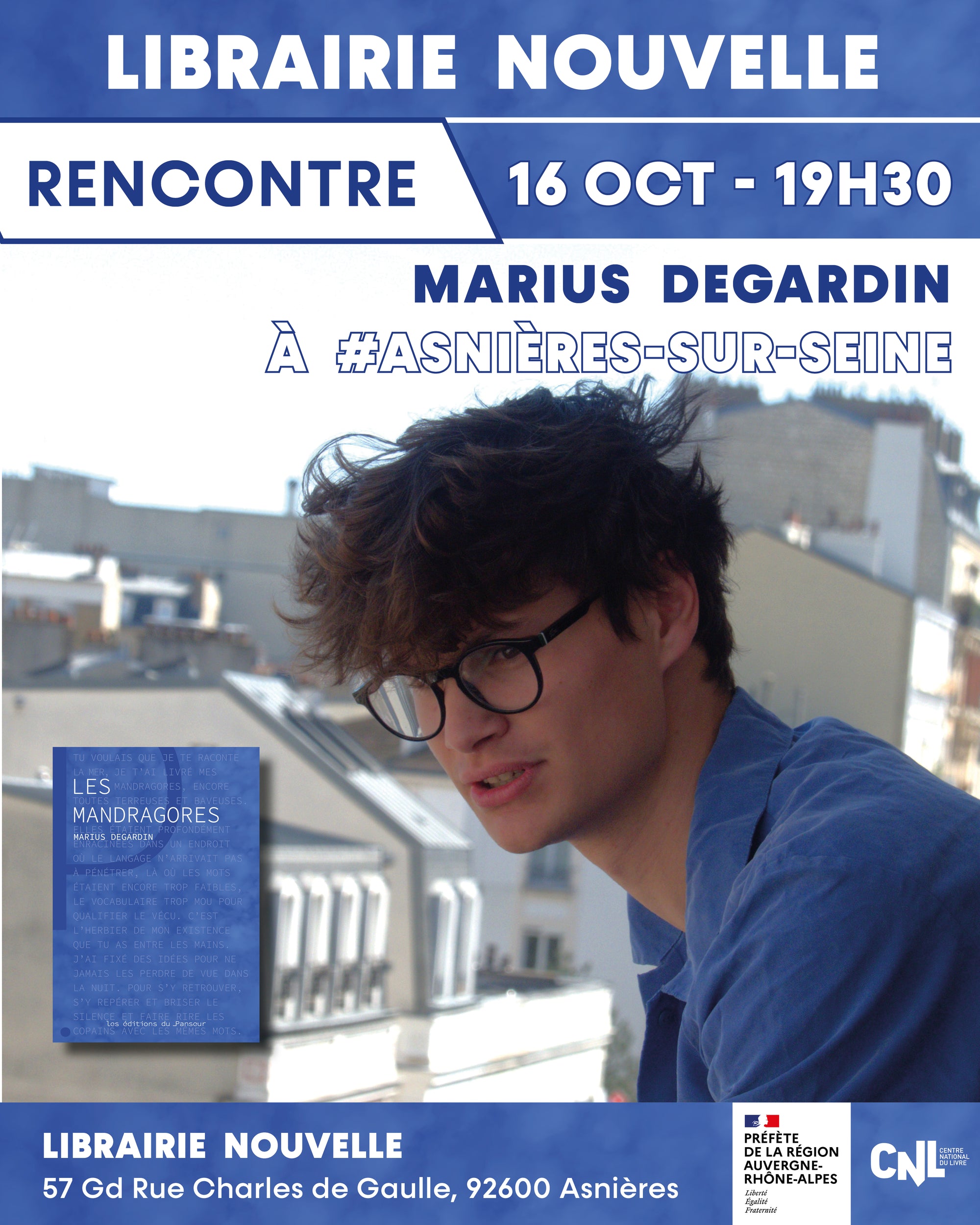 À 17 ans, Marius se lance dans l’écriture afin de mieux comprendre et surtout combattre ses idées noires qui deviendront Les Mandragores, son premier roman.